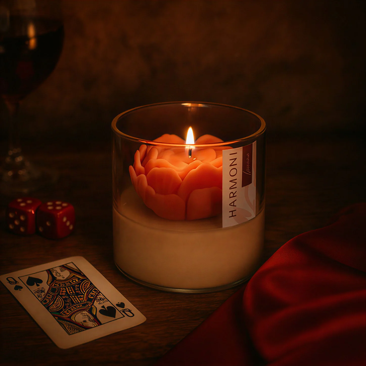 Свічка HARMONI Bloom — це втілення тендітності, що оживає у вашому просторі. Ми створили композицію, де в центрі лаконічної скляної чаші розквітає пишна квітка. Поєднання прозорого скла, теплого дерева та м’яких пастельних відтінків робить цей виріб справжньою окрасою будь-якого інтер’єру.