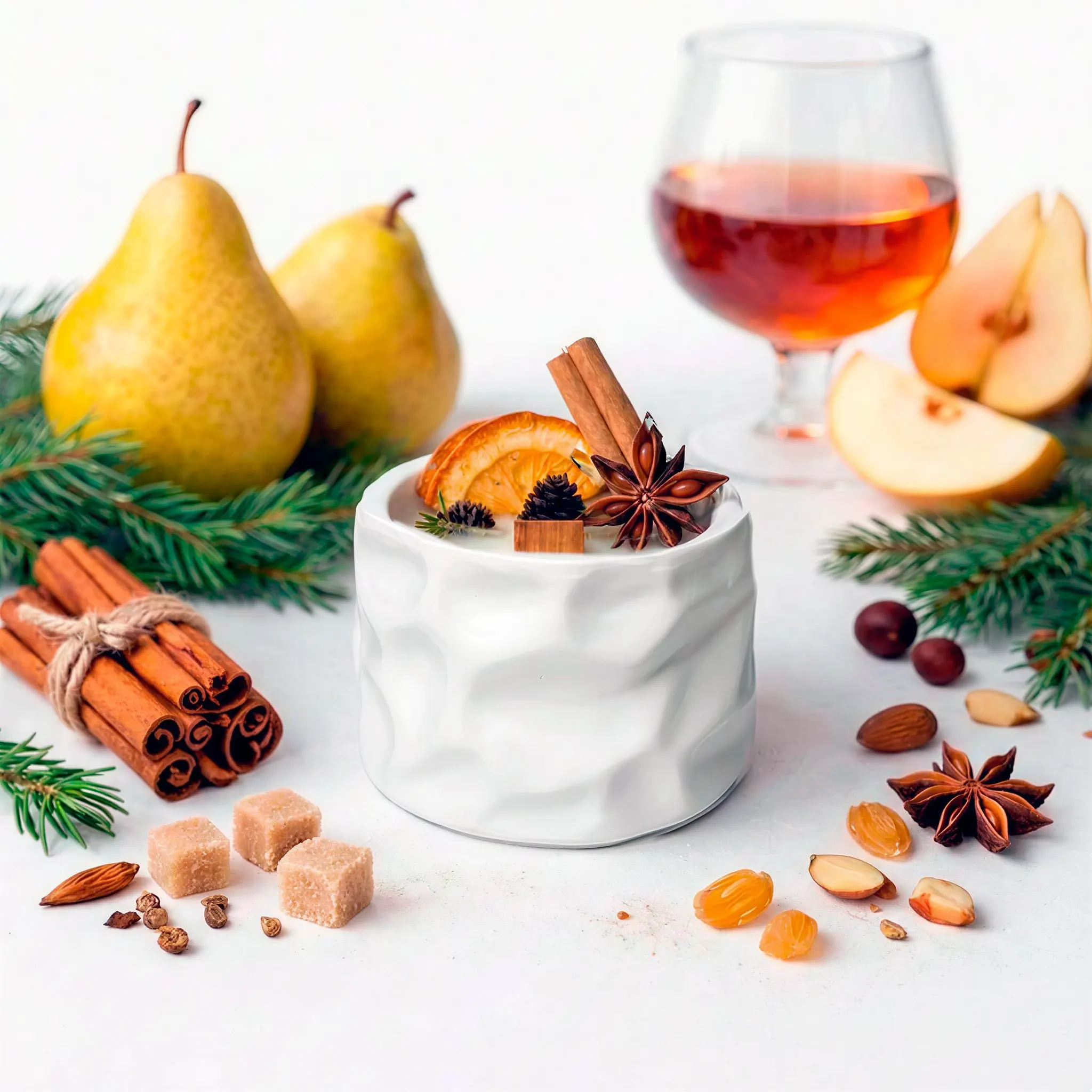 Свічка HARMONI Spice Ritual 170 мл — справжній витвір мистецтва, що зігріває душу одним лише виглядом. Її рельєфна біла форма, наче виліплена вручну, створює відчуття домашнього затишку та ексклюзивності. Кожен елемент зимового декору ретельно підібраний, щоб перетворити свічку на головний акцент вашого інтерʼєру.